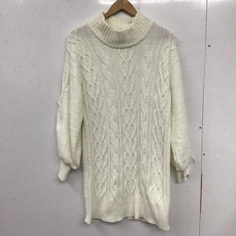 トルテ TORTE ワンピース ロングスカート 長袖ニットワンピース ロングスカート スタンドネック M 総柄 白 / ホワイト / レディース USED 古着 中古 10135021