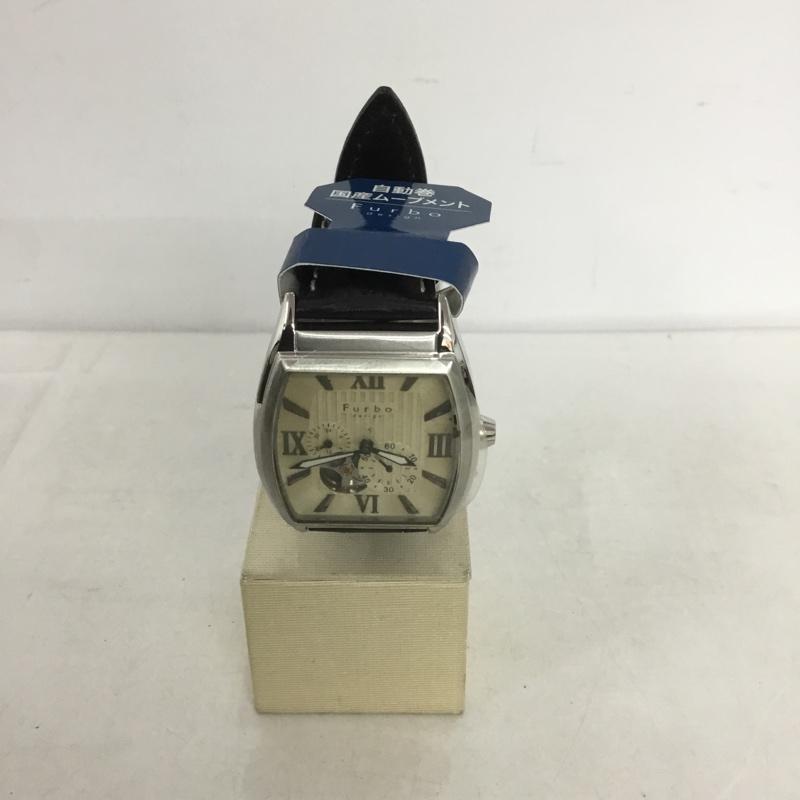 フルボデザイン Furbo design 腕時計 アナログ(自動巻き) F6002 レザーベルト 箱有 ロゴ、文字 黒 / ブラック / メンズ USED 古着 中古 10135034