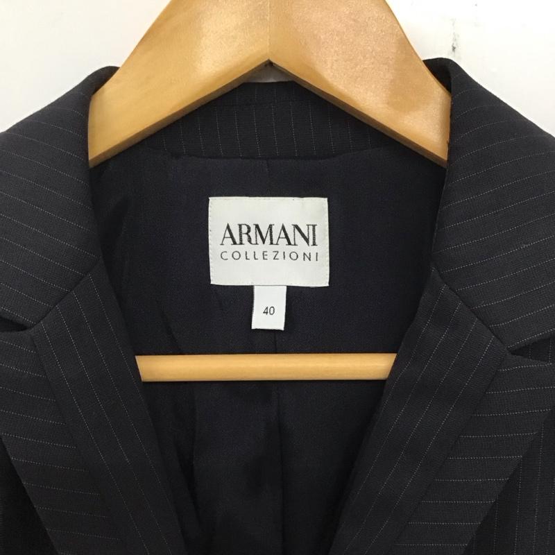 アルマーニコレッツォーニ ARMANI COLLEZIONI ジャケット、上着 ジャケット、ブレザー 長袖ジャケット アウター 前ボタン カラージャケット 40 ストライプ 紺 / ネイビー / レディース USED 古着 中古 10135060