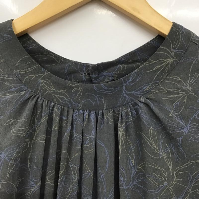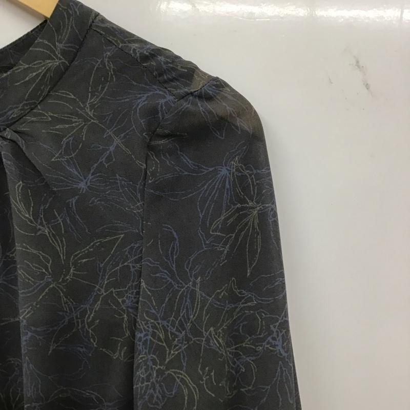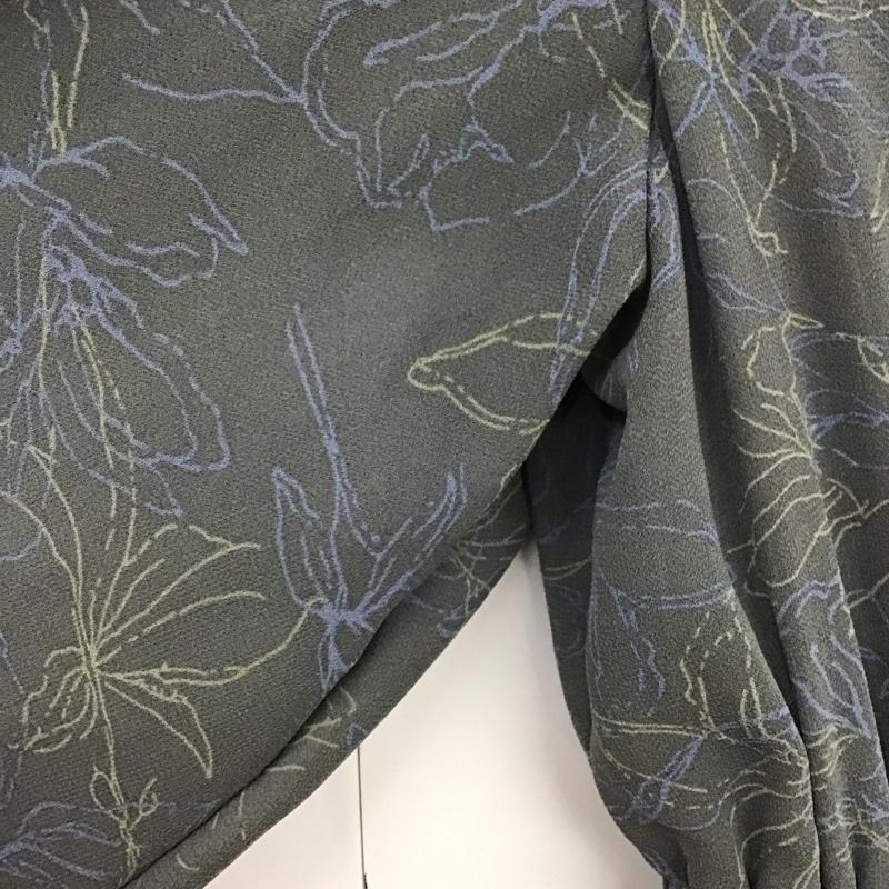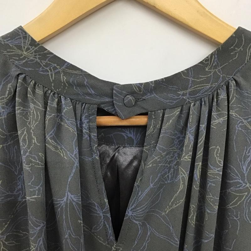 ミスティウーマン mysty woman ワンピース ロングスカート 長袖ロングワンピース フレアシャツワンピース ノーカラーシャツワンピース FREE プリント 灰 / グレー / レディース USED 古着 中古 10135213