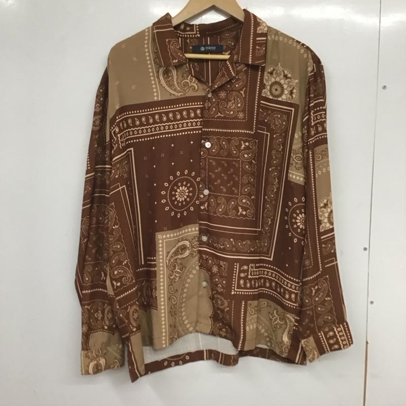 ナノユニバース nano・universe シャツ、ブラウス 長袖 長袖シャツ 総柄シャツ カラーシャツ ヒッコリーシャツ M プリント 茶 / ブラウン / メンズ USED 古着 中古 10135504