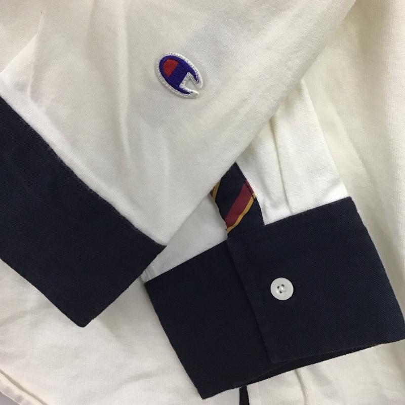 チャンピオン Campion ポロシャツ 長袖 長袖ポロシャツ 長袖カットソー カラーシャツ M ロゴ、文字 白 / ホワイト / メンズ USED 古着 中古 10137744
