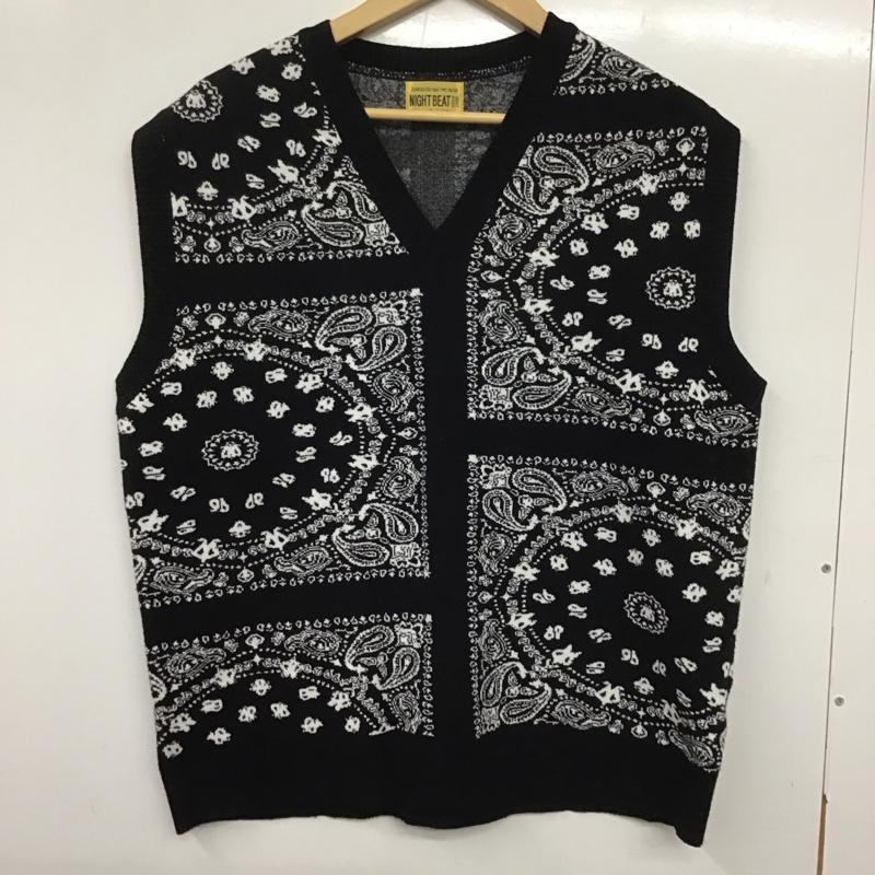 ナイトビート NIGHTBEAT ベスト ベスト ニットベスト ノースリーブカットソー プルオーバー プリント 白 / ホワイト / X 黒 / ブラック / メンズ USED 古着 中古 10138615