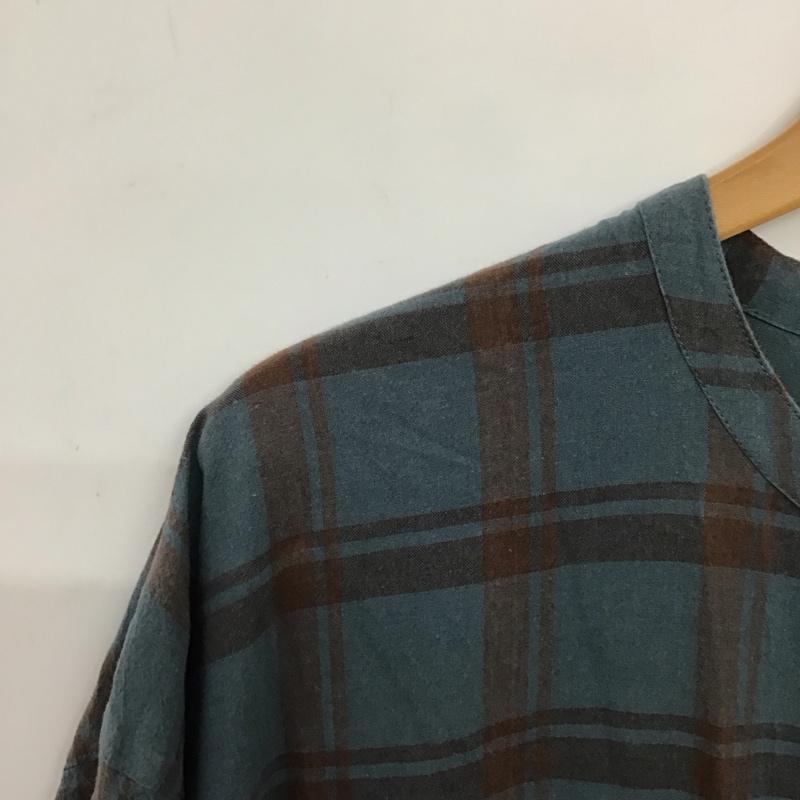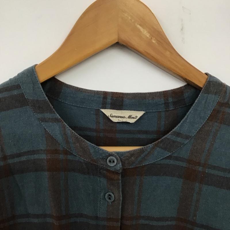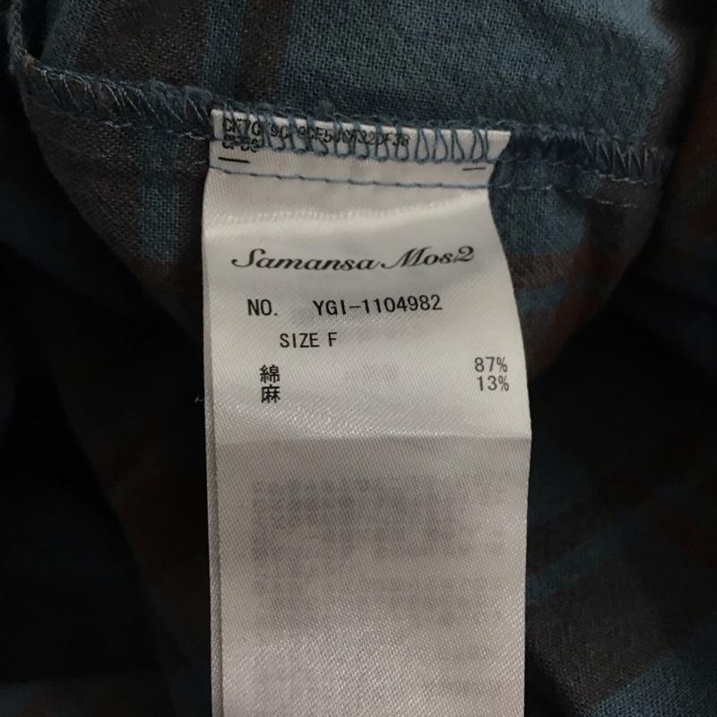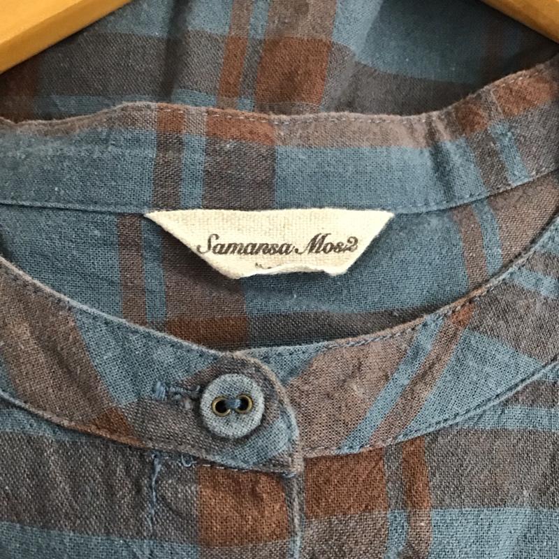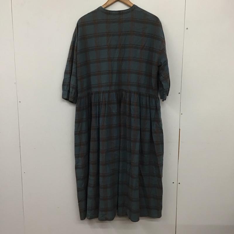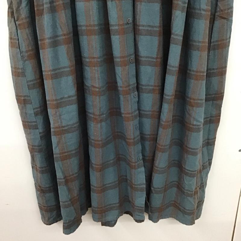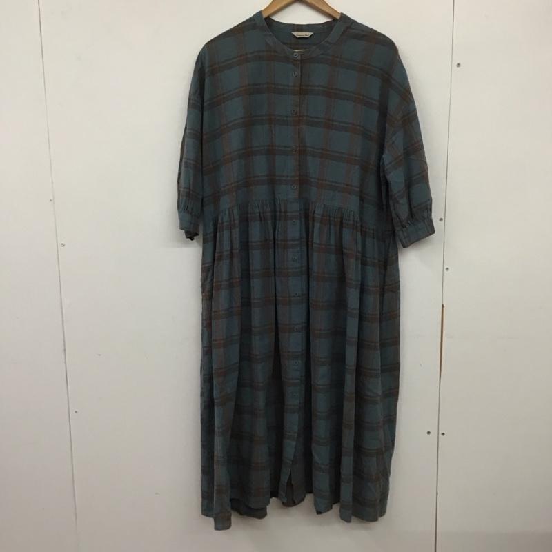 サマンサモスモス Samansa Mos2 ワンピース ロングスカート 1104982 バンドカラー 五分袖 七分袖 FREE チェック 青 / ブルー / X 茶 / ブラウン / レディース USED 古着 中古 10138667