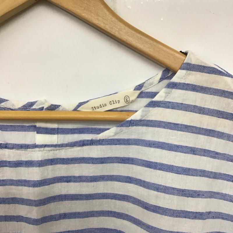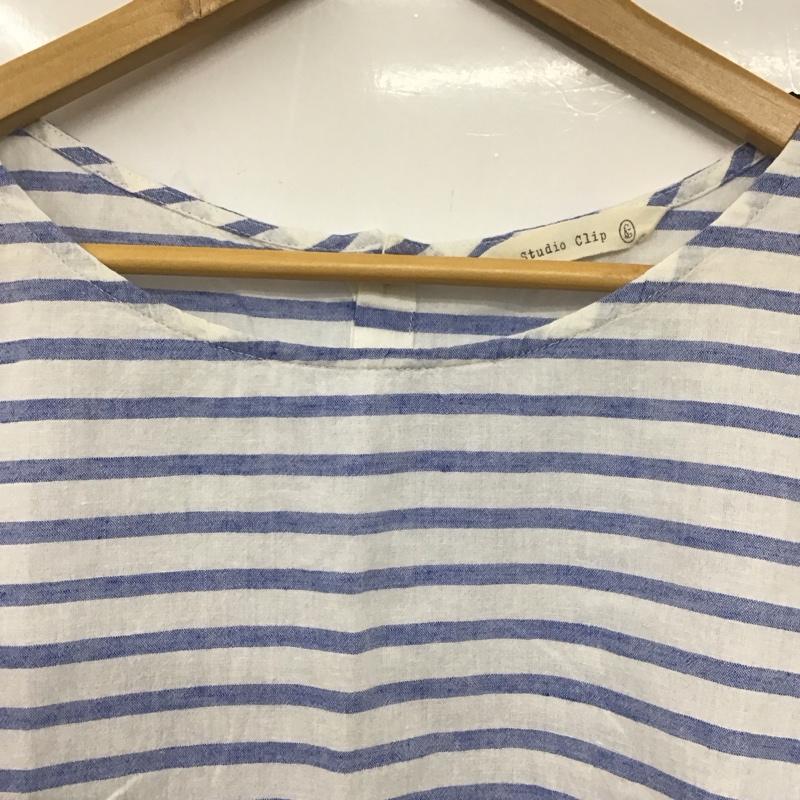 スタディオクリップ studio CLIP カットソー 半袖 半袖カットソー 半袖シャツ ボーダー ボーダー柄 白 / ホワイト / X 水色 / ライトブルー / レディース USED 古着 中古 10138790