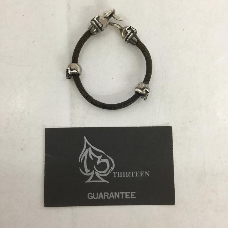 古着 USED アクセサリー ブレスレット、バングル THIRTEEN DESIGNS スカル ドクロ レザー スカル 銀 / シルバー / X 茶 / ブラウン / メンズ USED 古着 中古 10139984