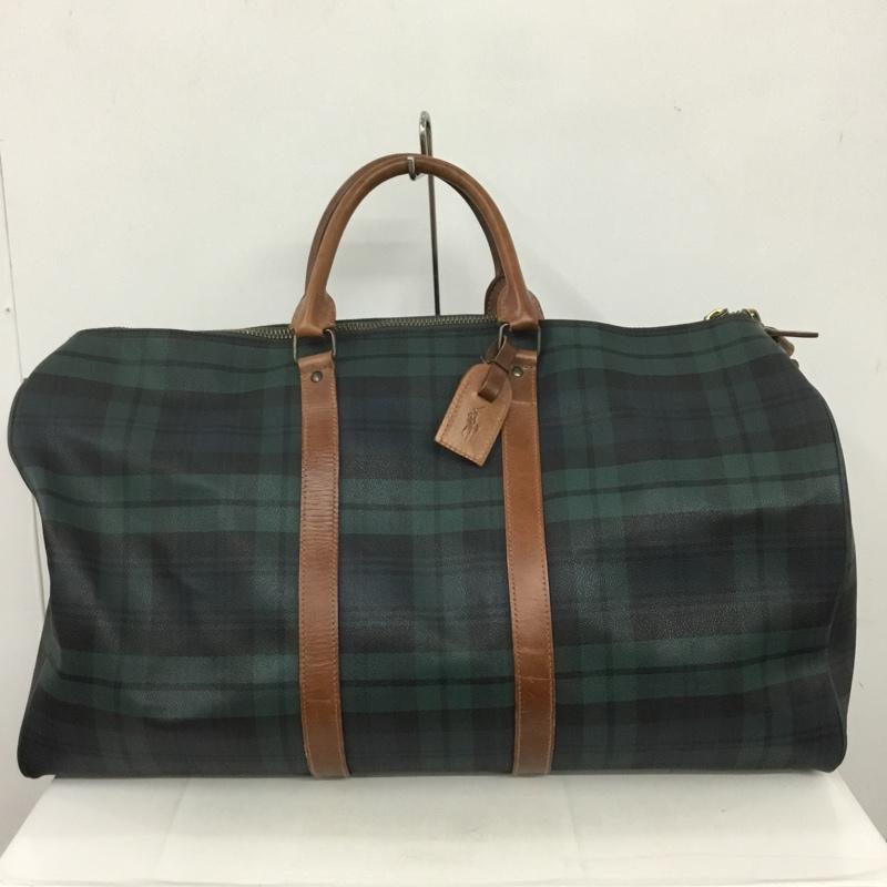 ポロラルフローレン POLO RALPH LAUREN ボストンバッグ ボストンバッグ チェック ロゴ、文字 緑 / グリーン / X 茶 / ブラウン / メンズ USED 古着 中古 10140052