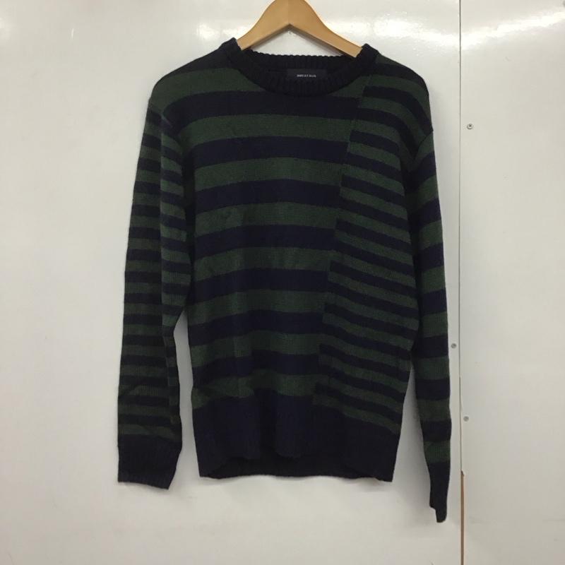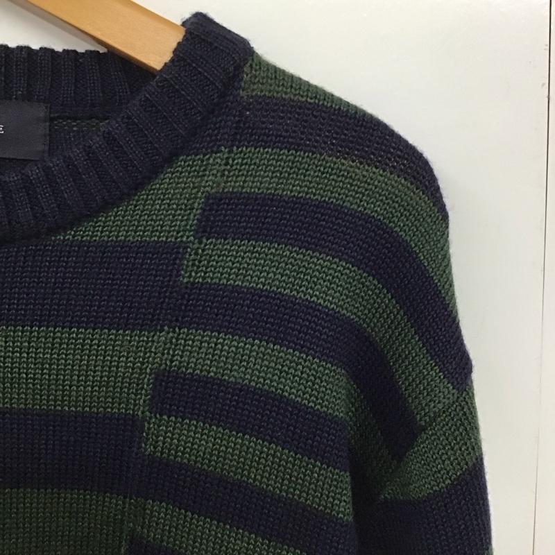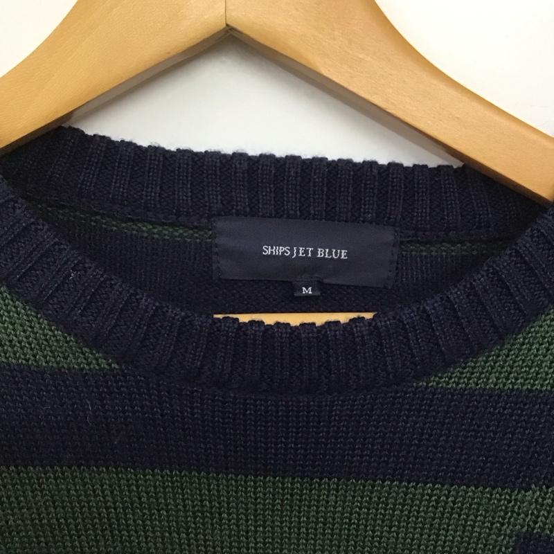 シップスジェットブルー SHIPS JET BLUE ニット、セーター 長袖 長袖ニットカットソー クルーネック セーター M ボーダー柄 紺 / ネイビー / X 緑 / グリーン / メンズ USED 古着 中古 10141753