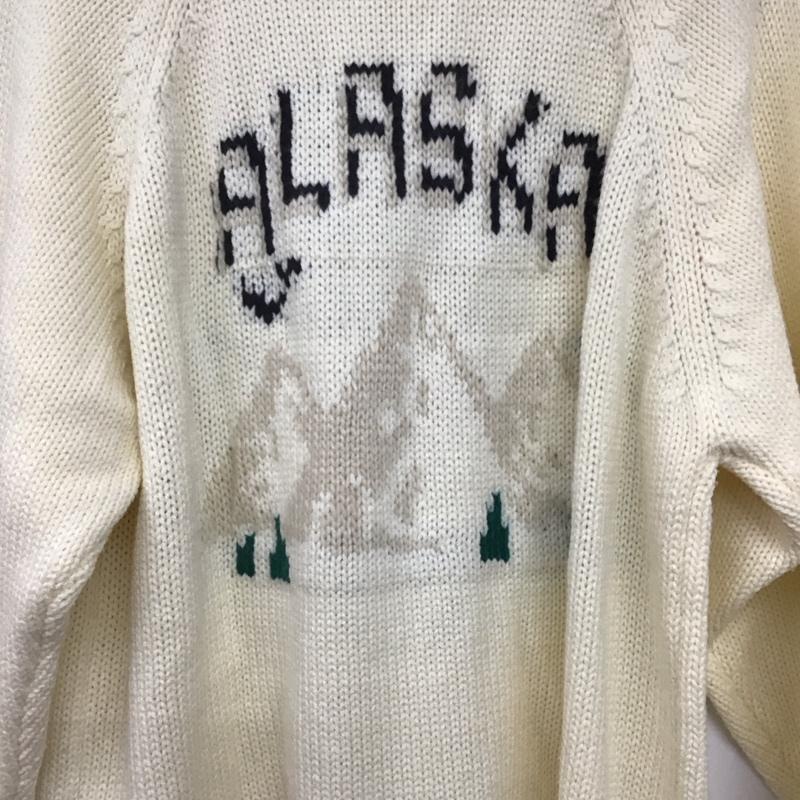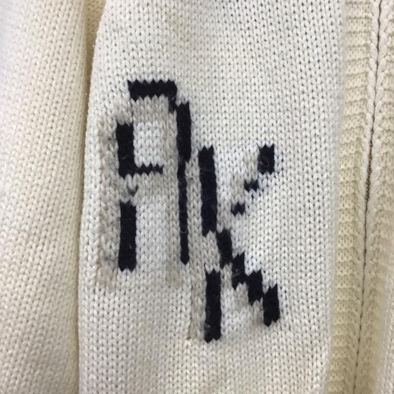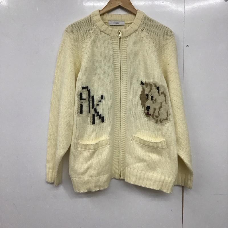 インヘリット INHERIT カーディガン 長袖 ジップアップニットカーディガン ニットジャケット アウター M プリント 白 / ホワイト / メンズ USED 古着 中古 10142386