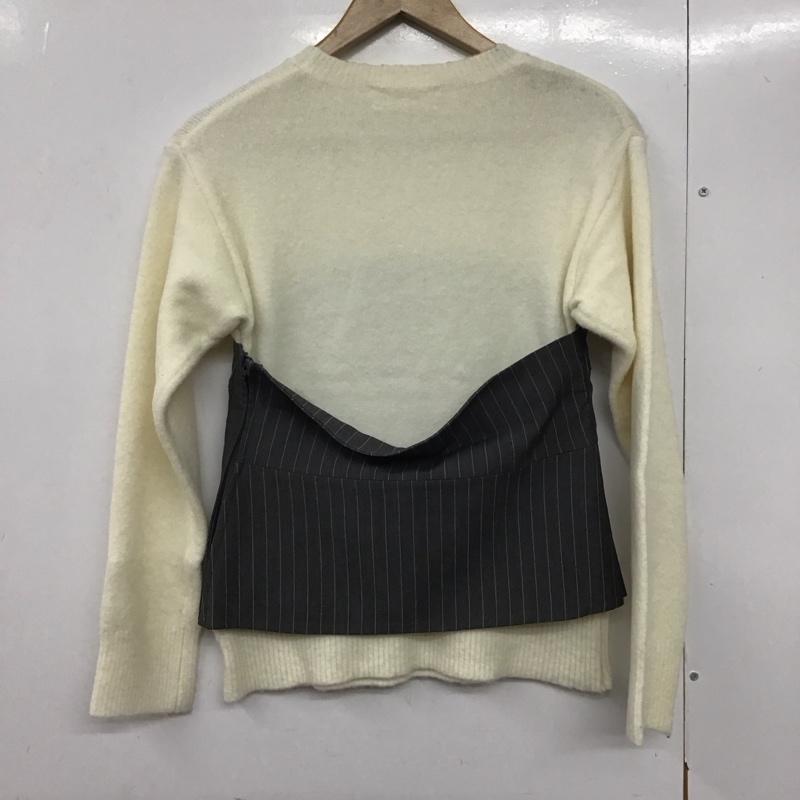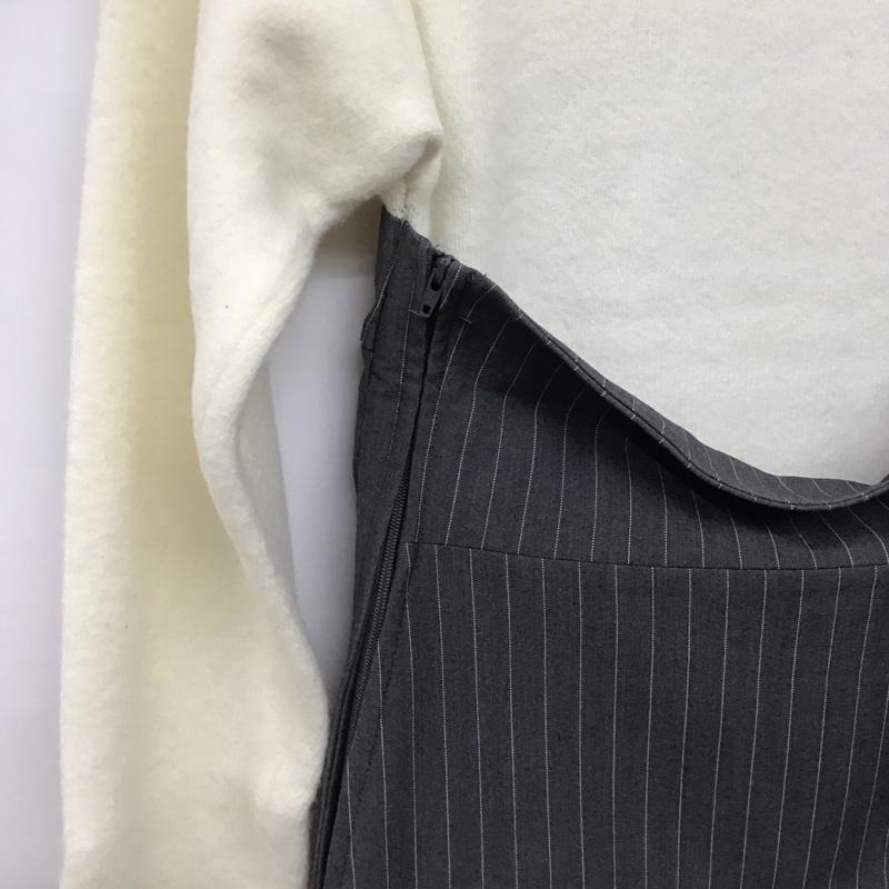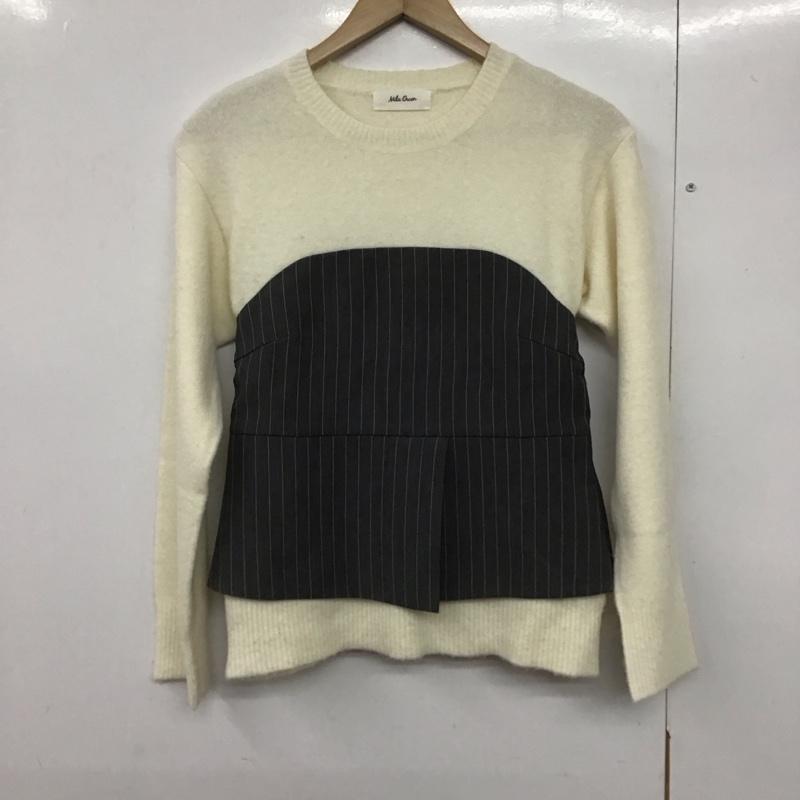ミラオーウェン Mila Owen ニット、セーター 長袖 長袖ニットカットソー クルーネック セーター 1 ストライプ 白 / ホワイト / レディース USED 古着 中古 10142452