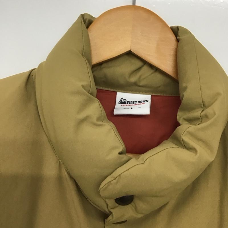 ファーストダウン FIRST DOWN ベスト ベスト ダウンベスト ノースリーブ 前ボタン L ロゴ、文字 ベージュ / ベージュ / メンズ USED 古着 中古 10142864