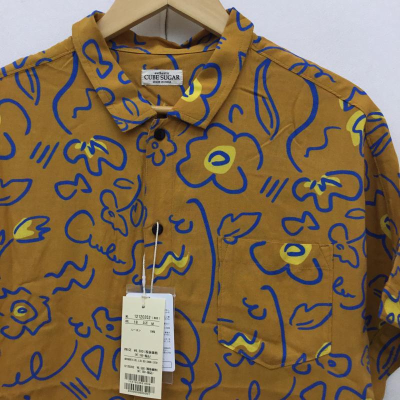 キューブシュガー CUBE SUGAR シャツ、ブラウス 半袖 M 花柄 マスタード / マスタード / X 青 / ブルー / レディース USED 古着 中古 10144391