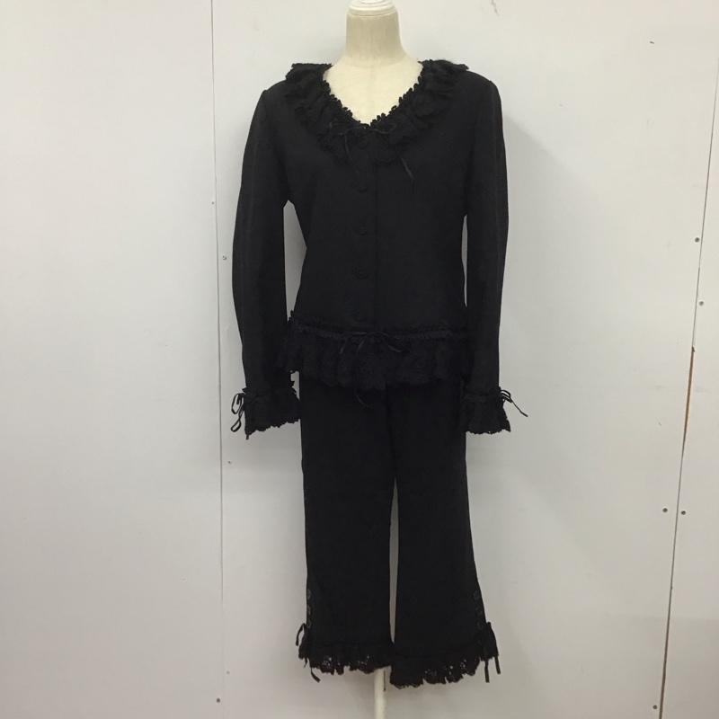 ピンクハウス PINK HOUSE セットアップ セットアップ P0103FJ01 P0103FP03 襟レース 裾レース ジャケット パンツ 七分丈パンツ L 無地 黒 / ブラック / レディース USED 古着 中古 10144434