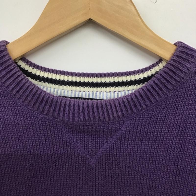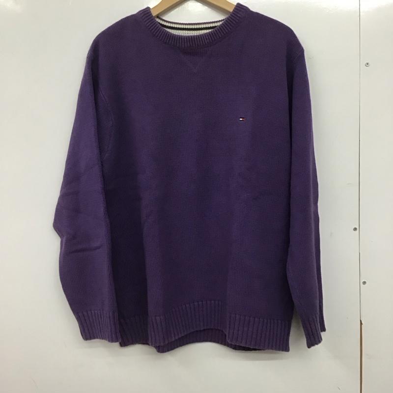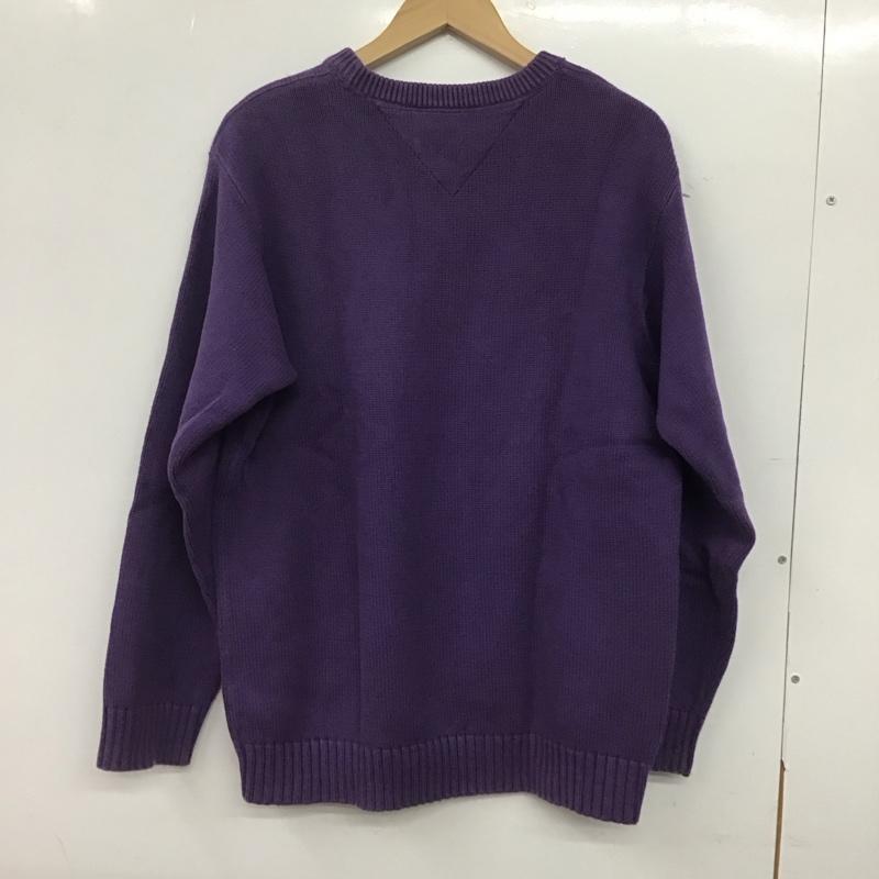トミーヒルフィガー TOMMY HILFIGER ニット、セーター 長袖 長袖ニットカットソー クルーネック セーター L ロゴ、文字 紫 / パープル / メンズ USED 古着 中古 10145015