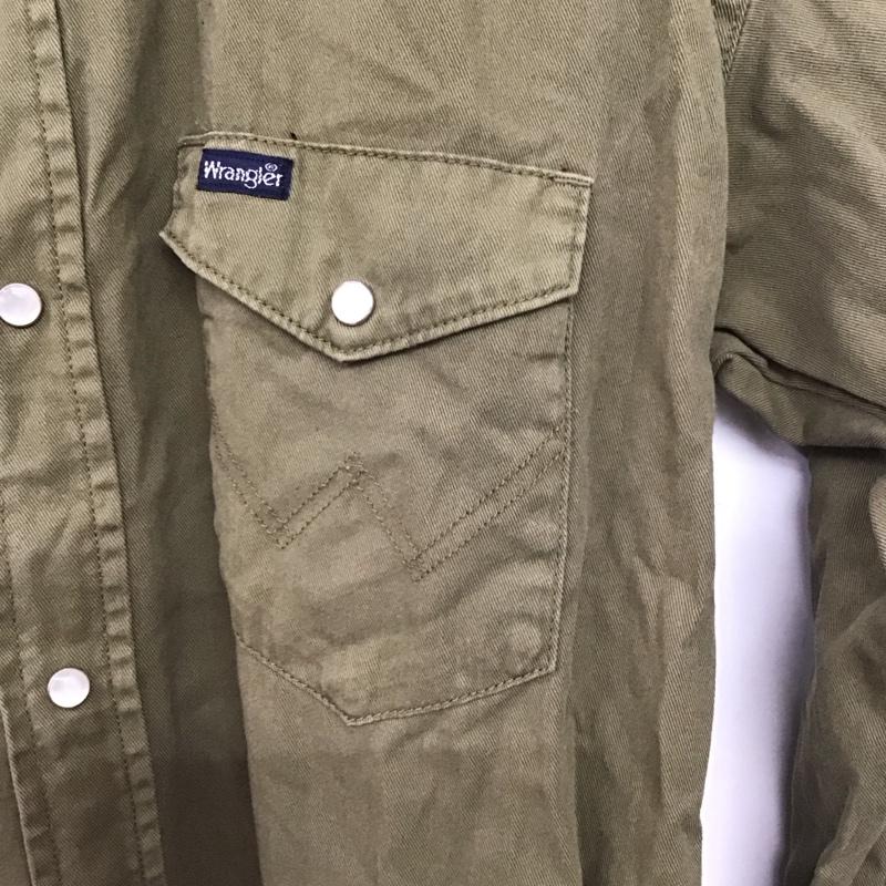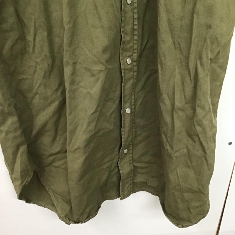 ラングラー Wrangler ワンピース ロングスカート 長袖シャツワンピース ロングワンピース ノーカラー フロントボタン FREE ロゴ、文字 カーキ / カーキ / レディース USED 古着 中古 10147898