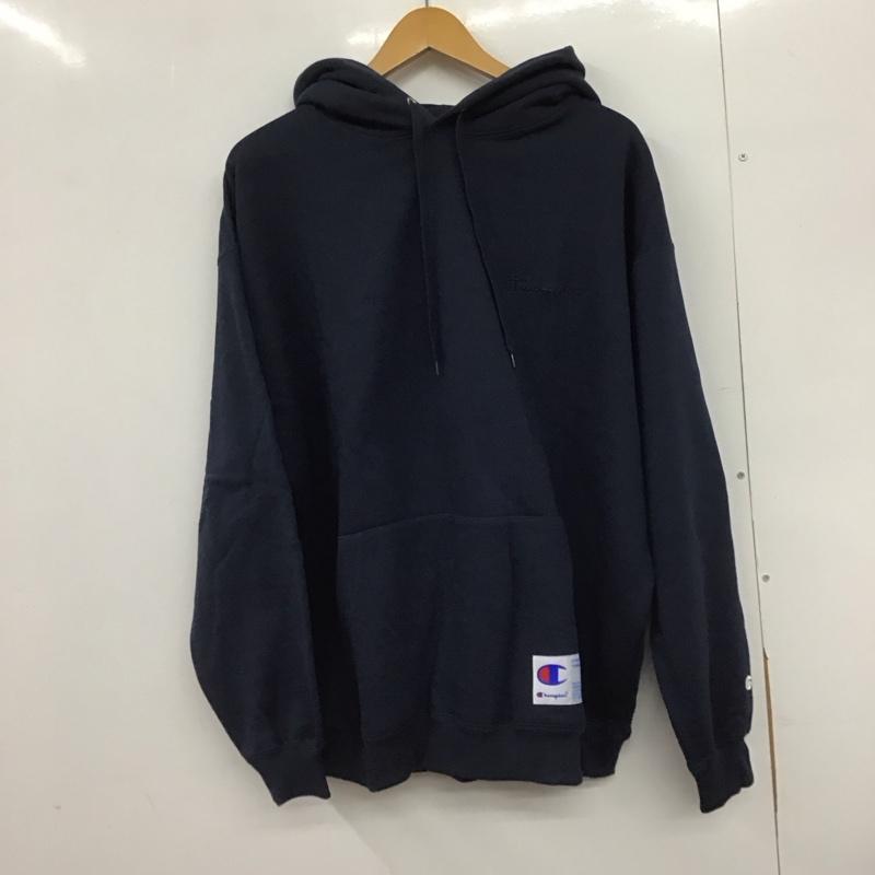 チャンピオン Champion パーカー 長袖 c3-v107 パーカー 長袖トレーナー L ロゴ、文字 紺 / ネイビー / メンズ USED 古着 中古 10148308